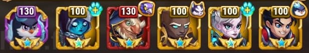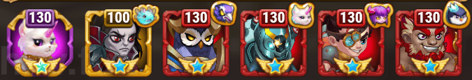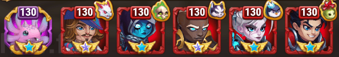 5番目の敵まではアウグストゥス、オリオン、グース、チャバ、ドリアン(またはヘリオス)を初期レベルでクリアすることができますが、6番目以降は物理チームが必要です。全体を通して1チームだけで勝つ場合は以下のチームが有効です