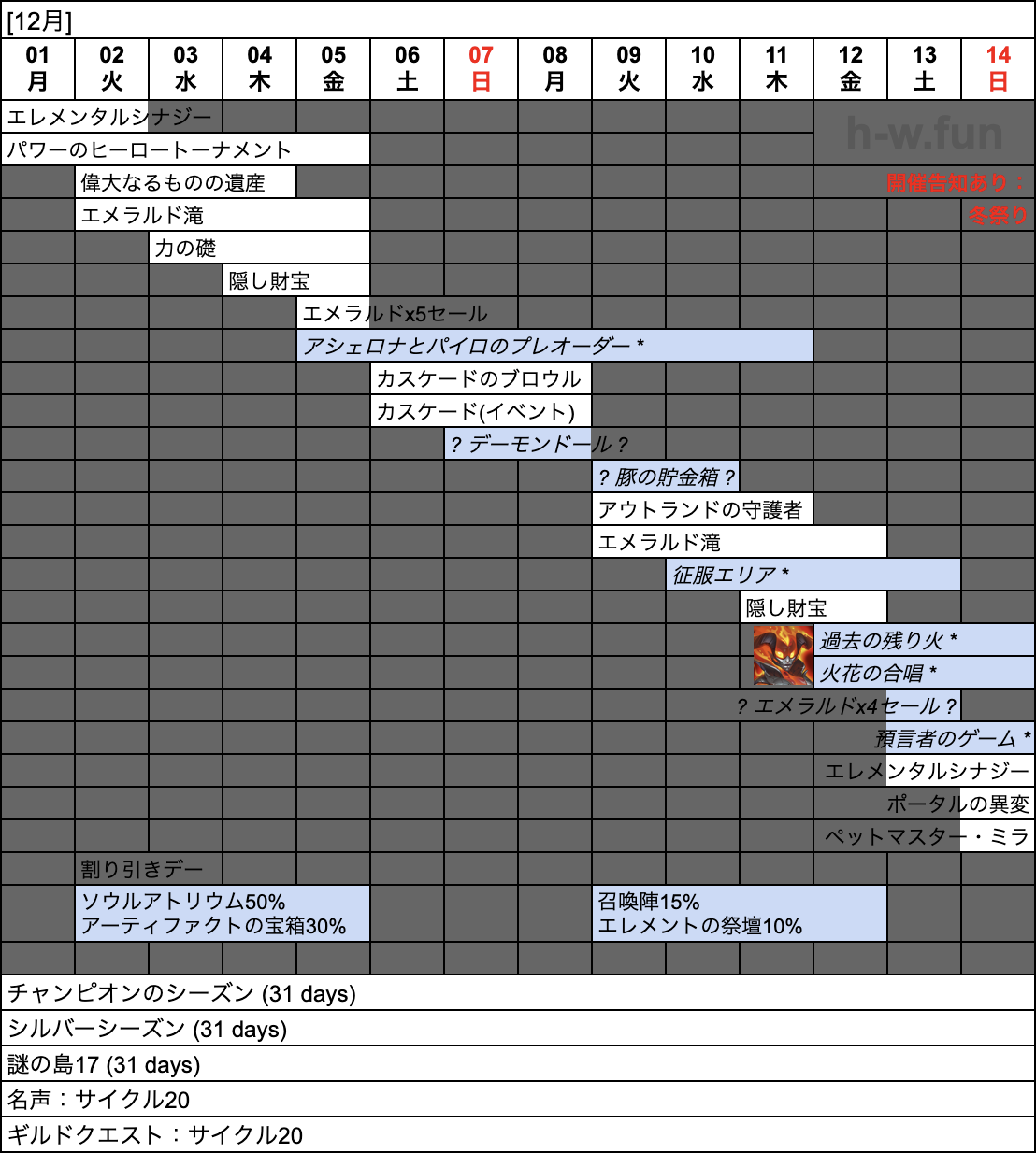| 3 | T.B.D. (タイタン) | 50 | 50 | タイタンスキンストーン x25,000 ヴァラーコイン x20,000 サファイアのメダリオン x2 |