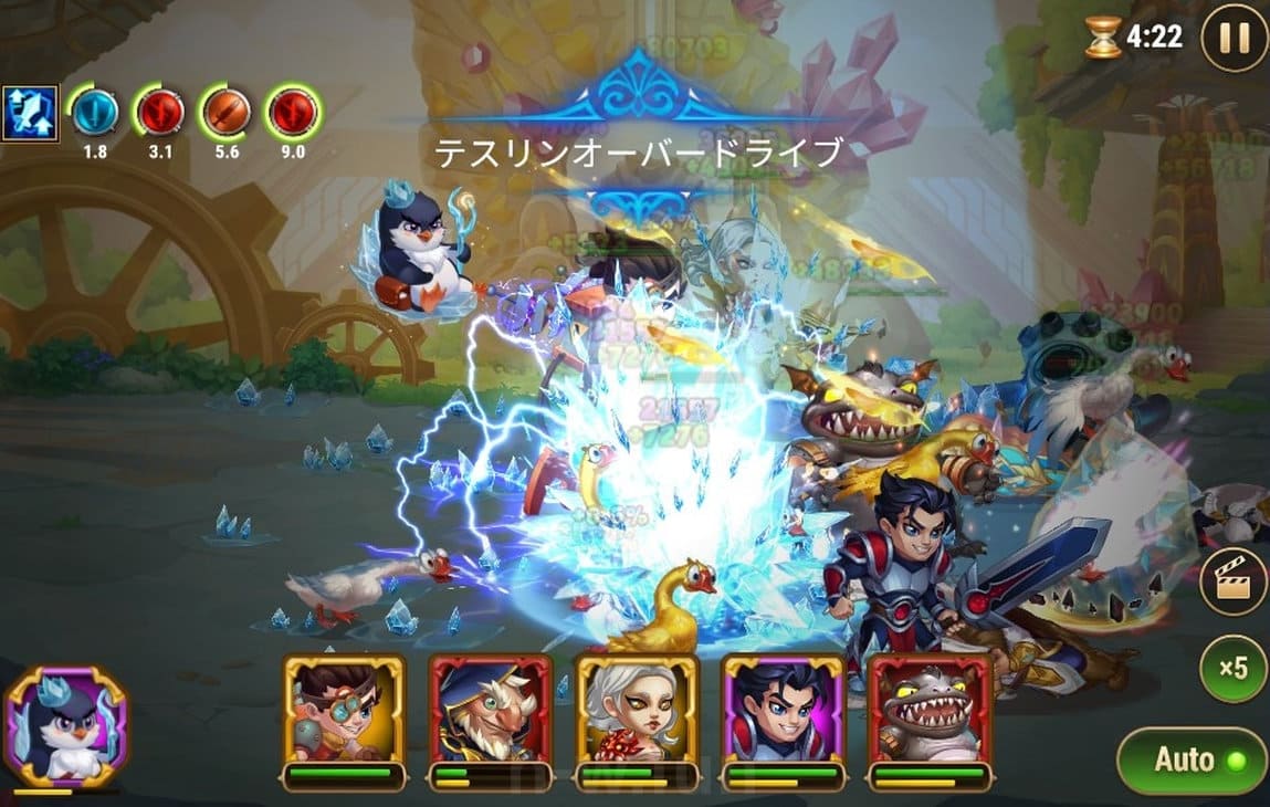 • ヒーローのチャプターでは、ヒーローとペットを屋台で集めてチームを組み立てます。敵のチームもヒーローです
