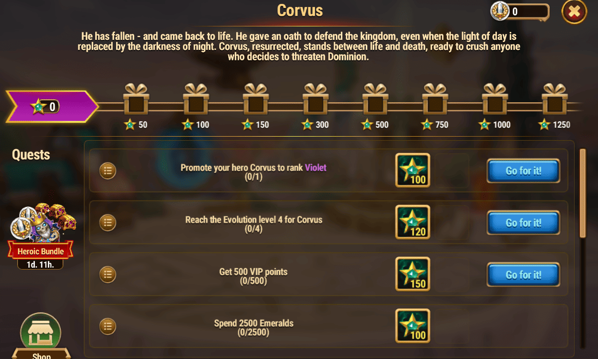 Promote your hero Corvus | Orange +2 | 700 Point | 2,380 |