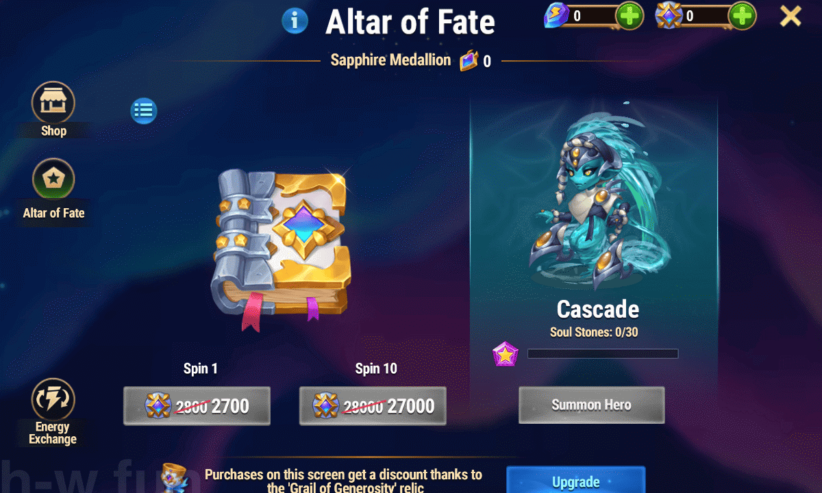 - Visit the Limited Time Shop during the Hero Wars “Under the power of Water” Special Event.