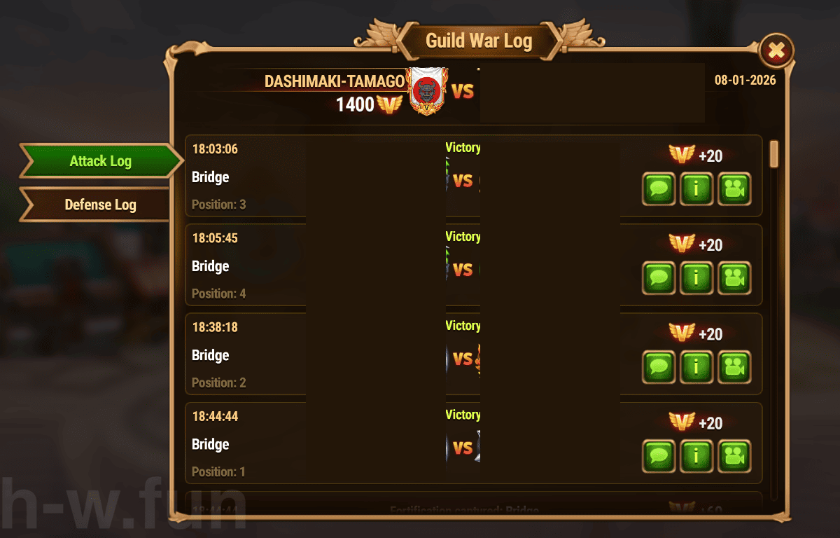 - If attack orders are strictly assigned and detailed instructions are given in real time, at least one general must constantly monitor the screen until the Guild War ends.