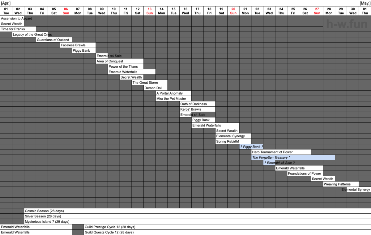 - Tue. Apr. 08 – Tue. May. 06 : Guild Quests Cycle 12 (28 days)