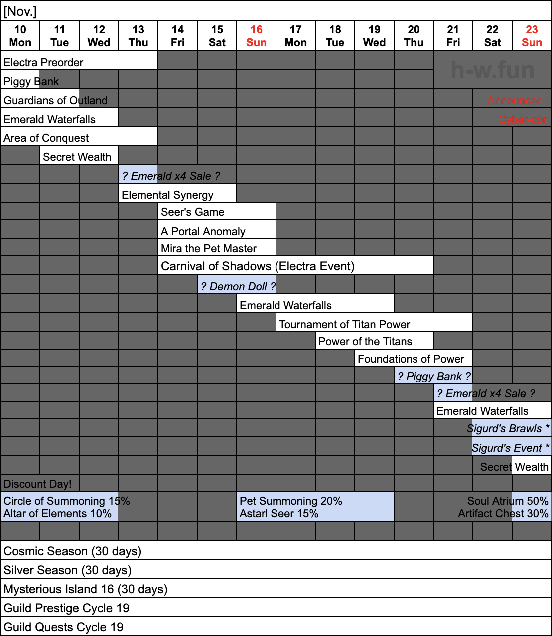 - Fri. Nov. 14 – Mon. Nov. 17: Seer’s Game