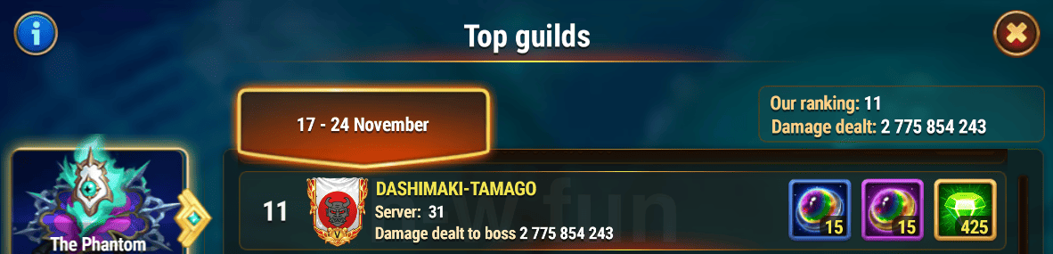 It has to be lowered like the old style of the event where it was really positively engaging with guild mates, waiting few minutes to attack together for example, chatting, discussing- that had spirit…. Now everyone logging in, just doing their moves and that’s it….