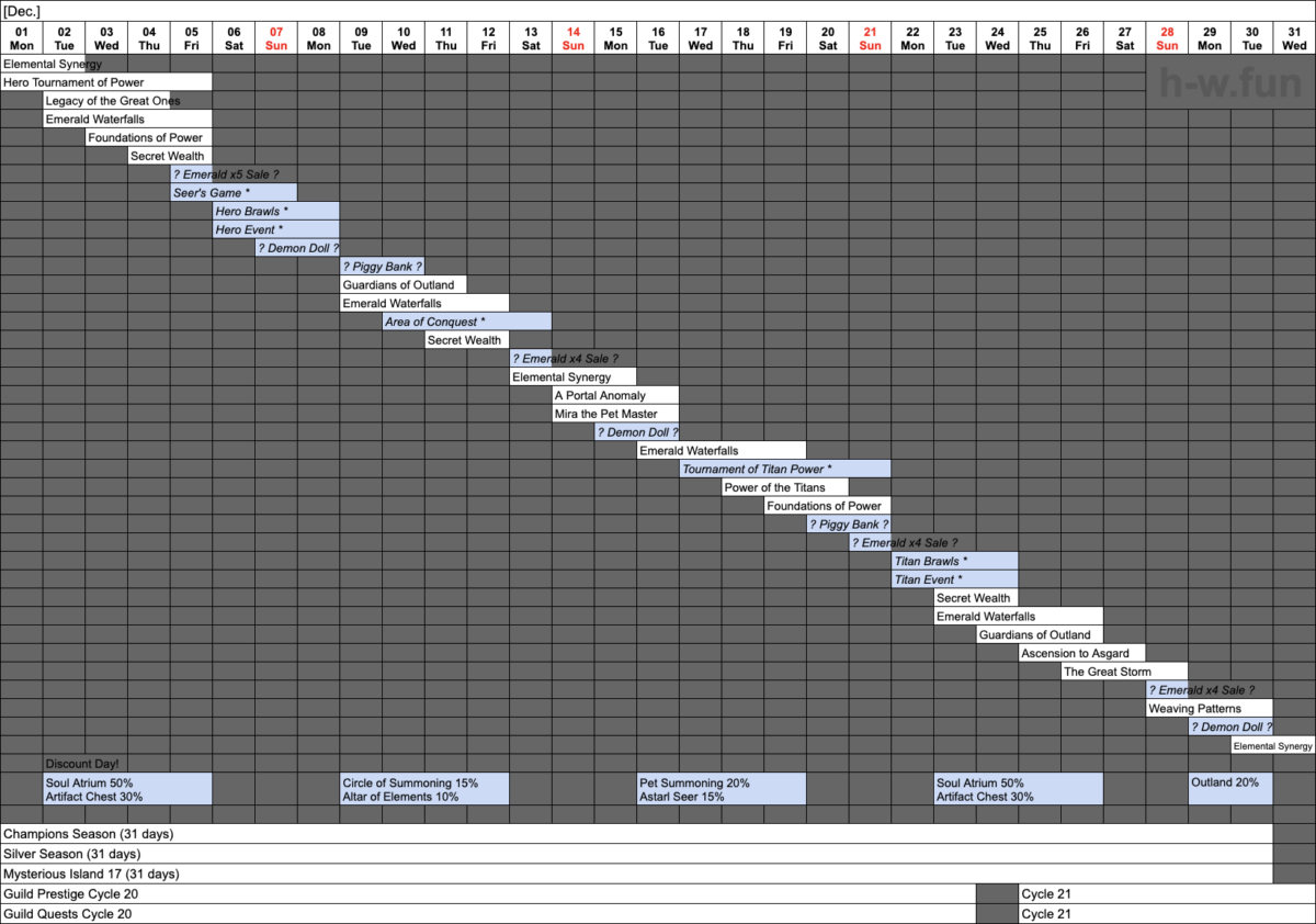 - Sat. Dec. 06 – Tue. Dec. 09: Hero Event *