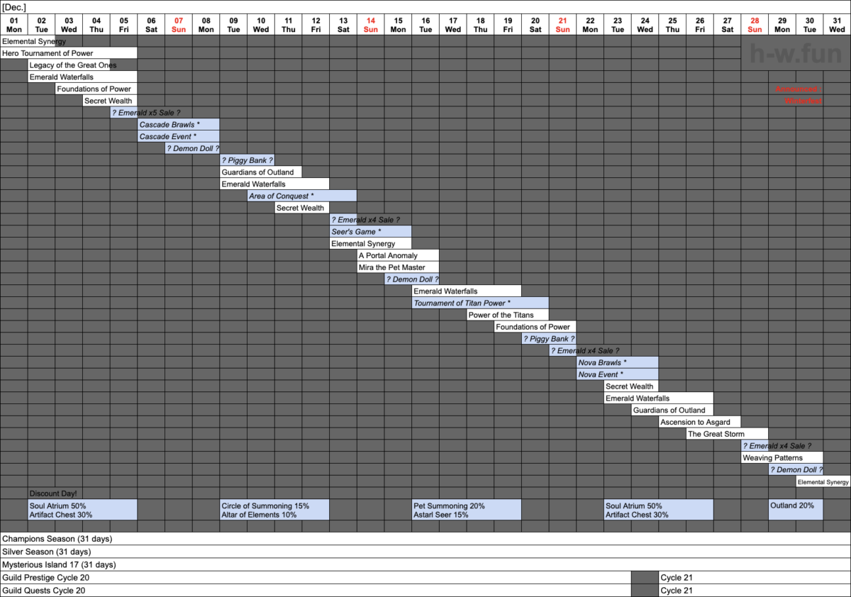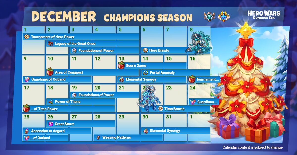 - Mon. Dec. 01 – Sat. Dec. 06: Hero Tournament of Power
