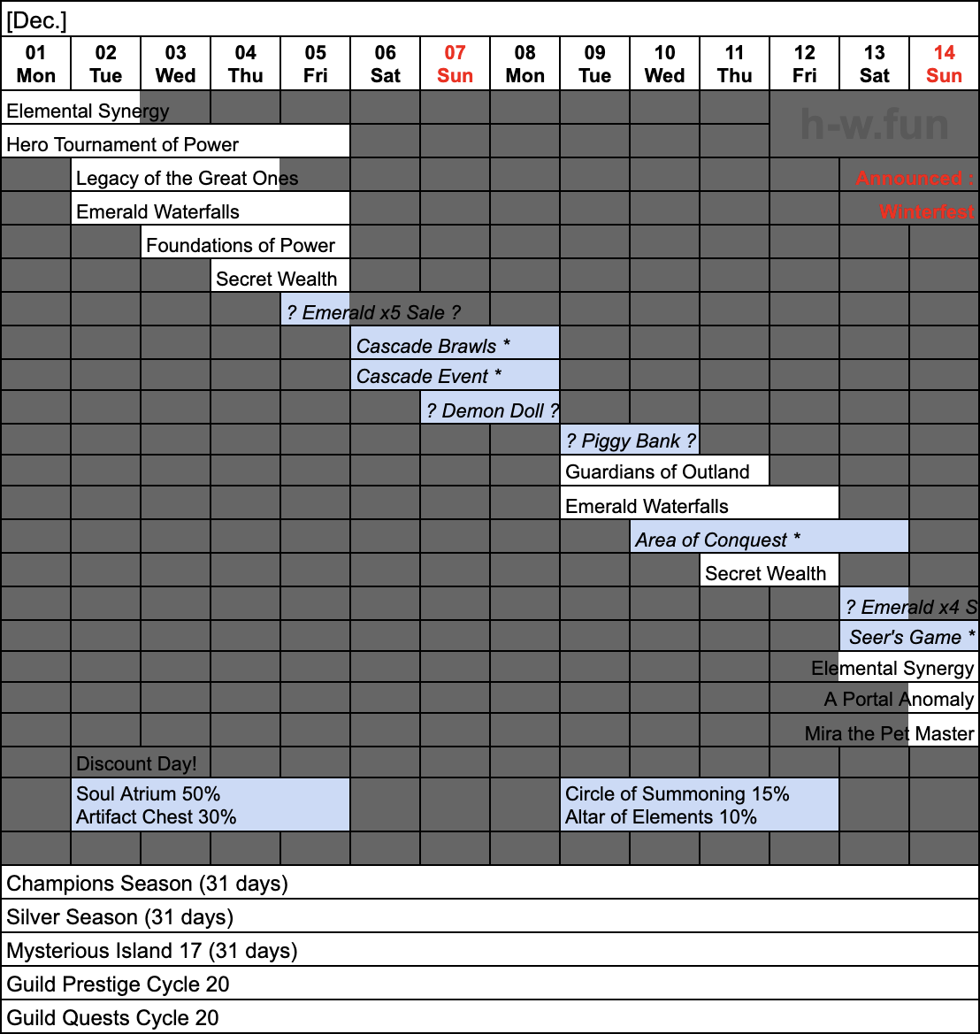 - Sat. Dec. 13 – Tue. Dec. 16: Seer’s Game *