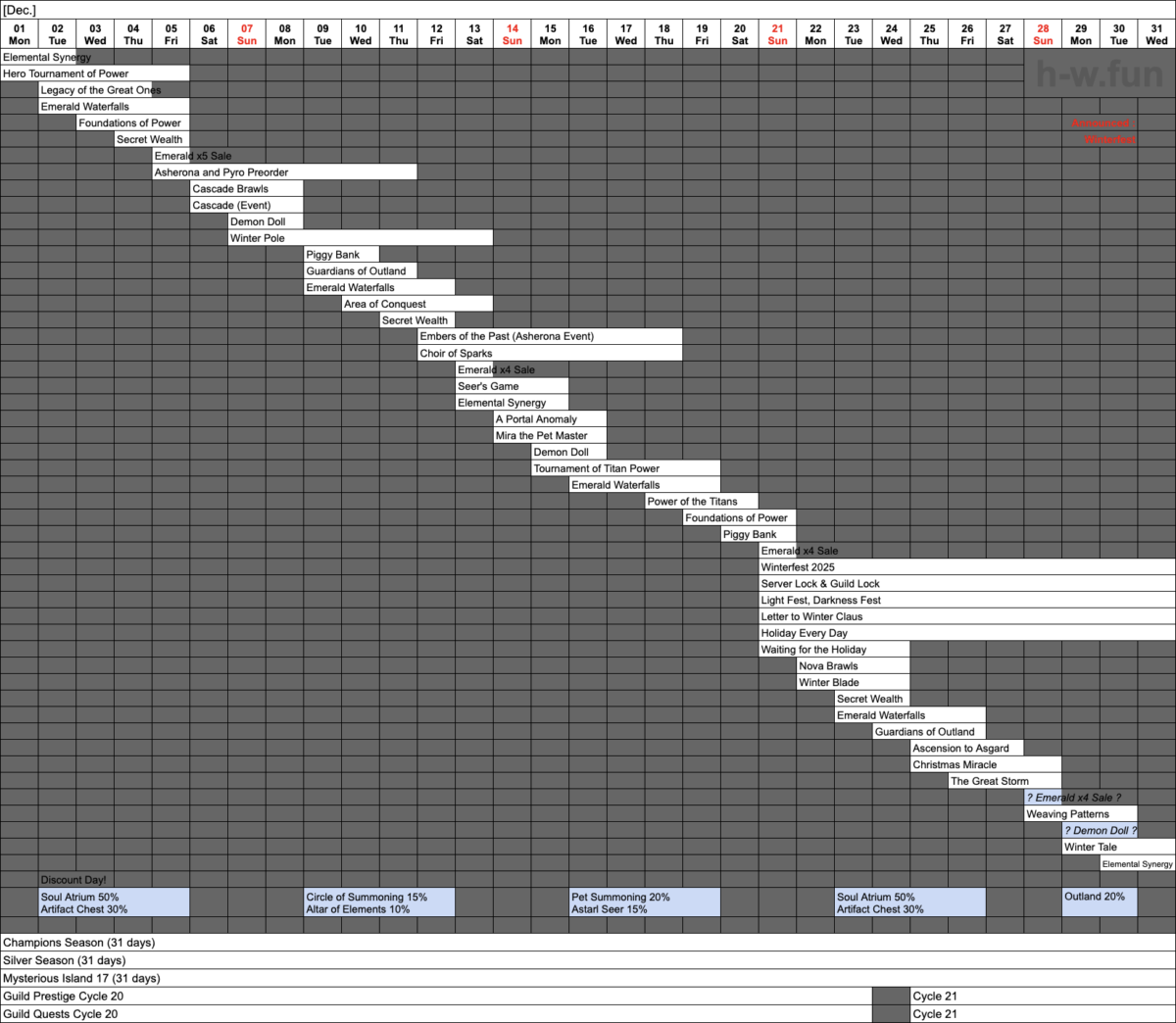 - Mon. Dec. 01 – Thu. Jan. 01: Champions Season (31 days)
