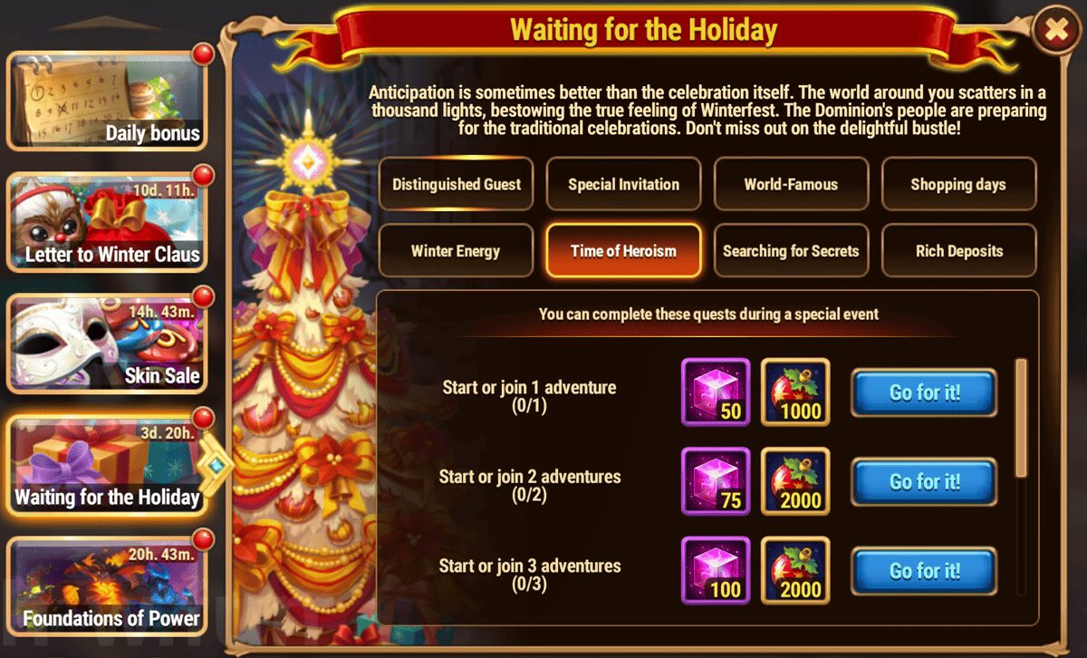 [Hero Wars Guide]Waiting for the Holiday Tasks and Rewards 2025