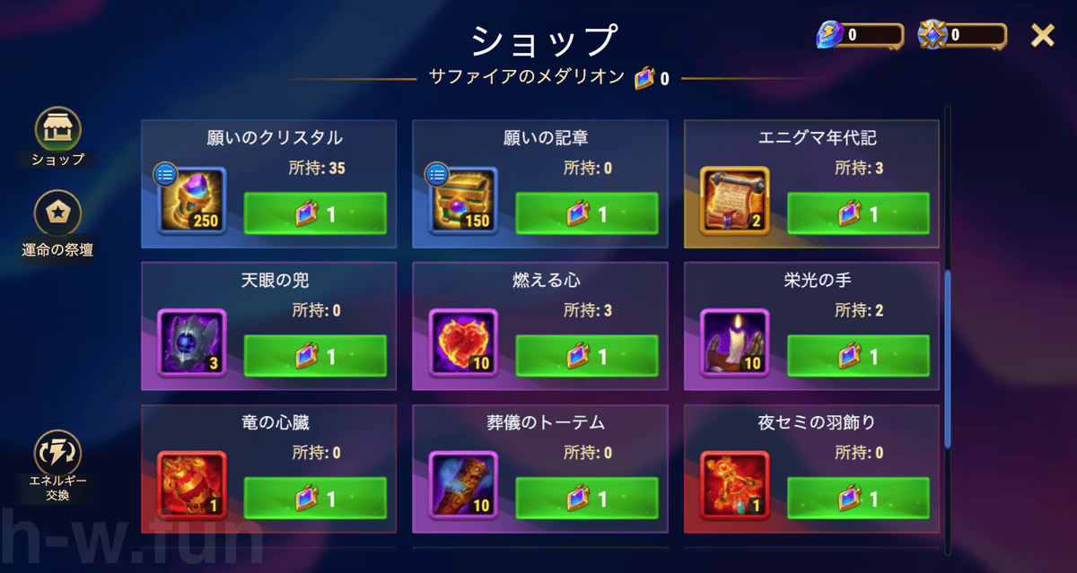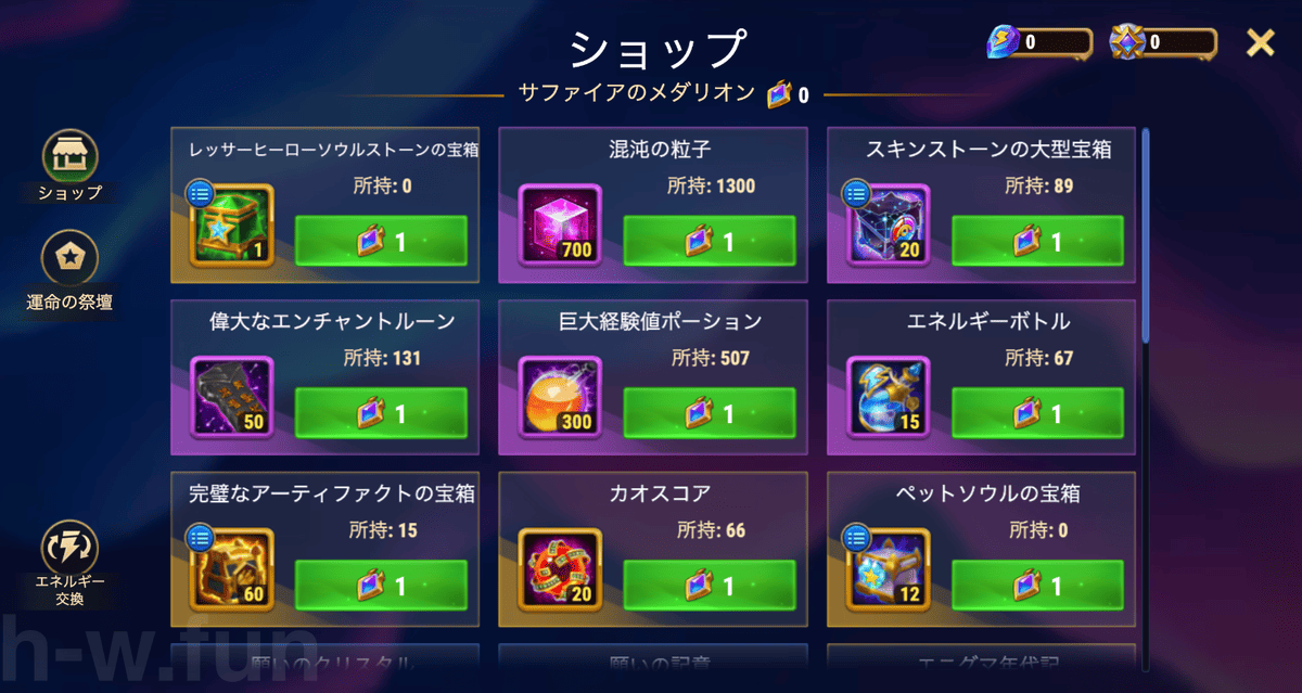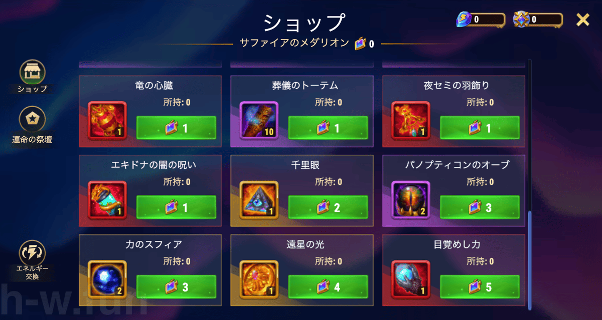 - イベント景品のコイン(サファイアのメダリオン)を使ってお買い物が可能