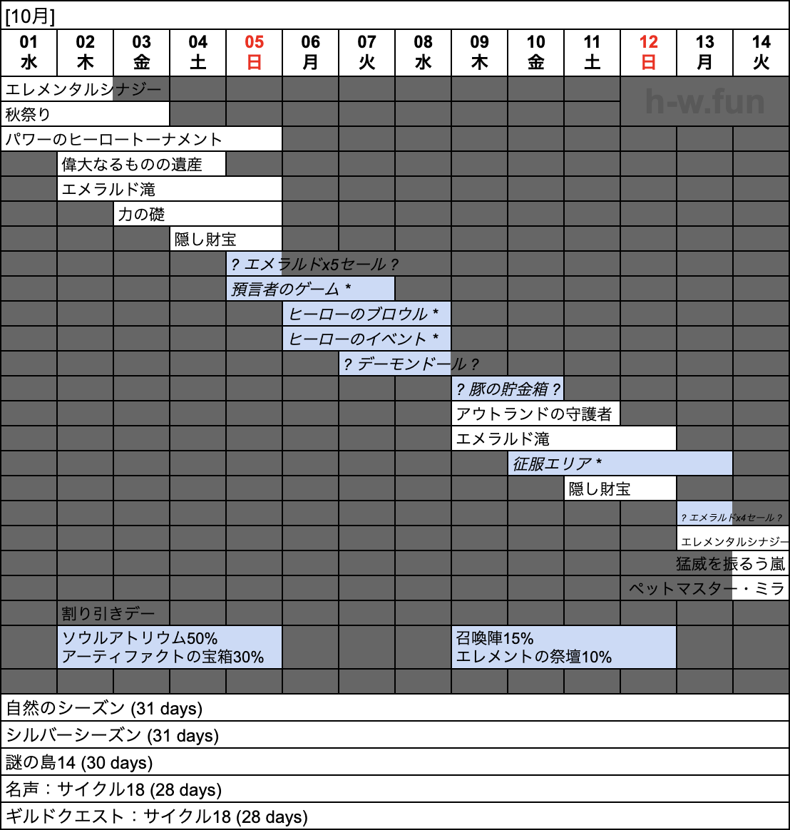 - 10/01(水) 〜 10/06(月): パワーのヒーロートーナメント