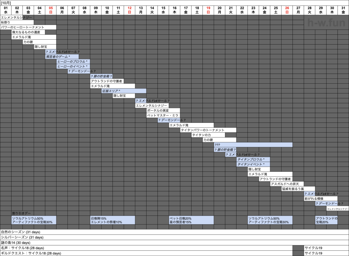 - 10/28(火) 〜 11/25(火): 名声:サイクル19