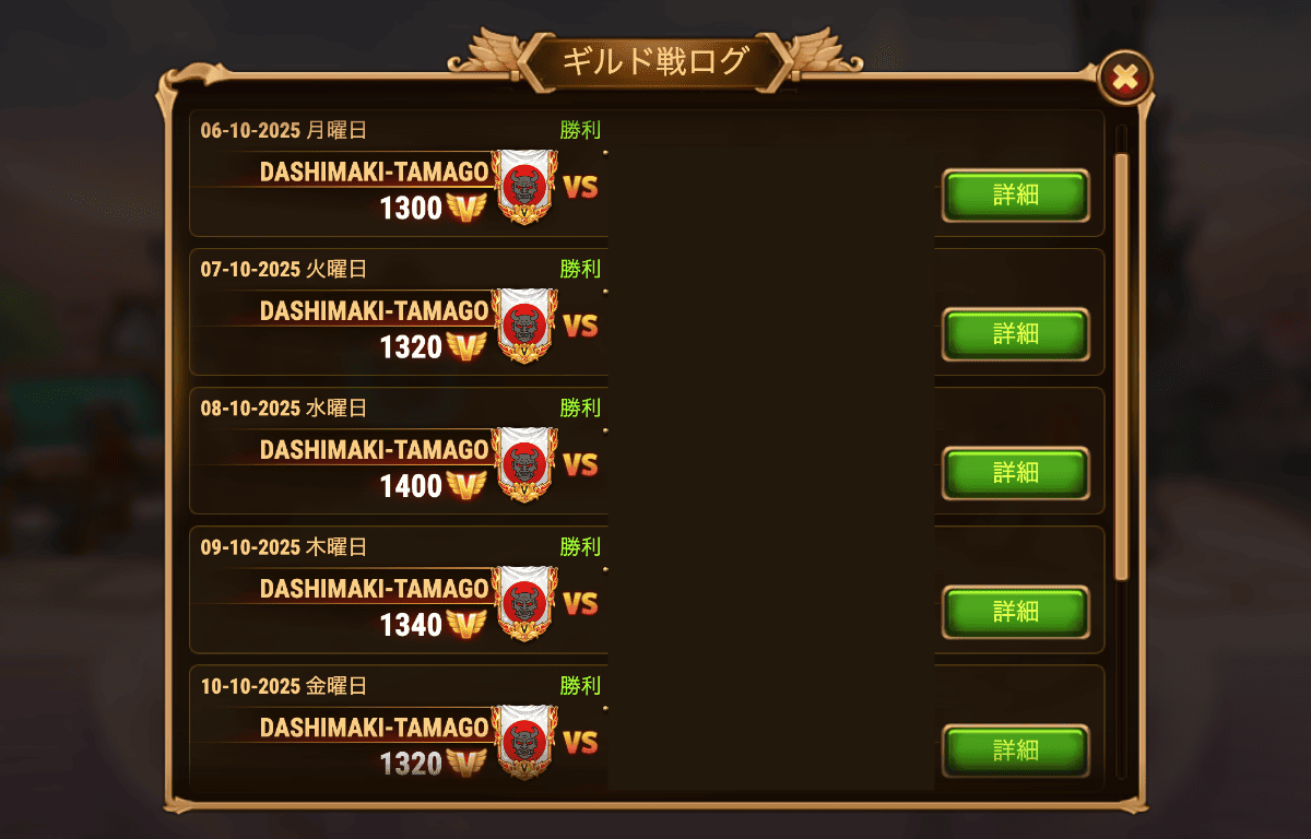 ギルドDASHIMAKI-TAMAGOの戦績(2025.Week41)