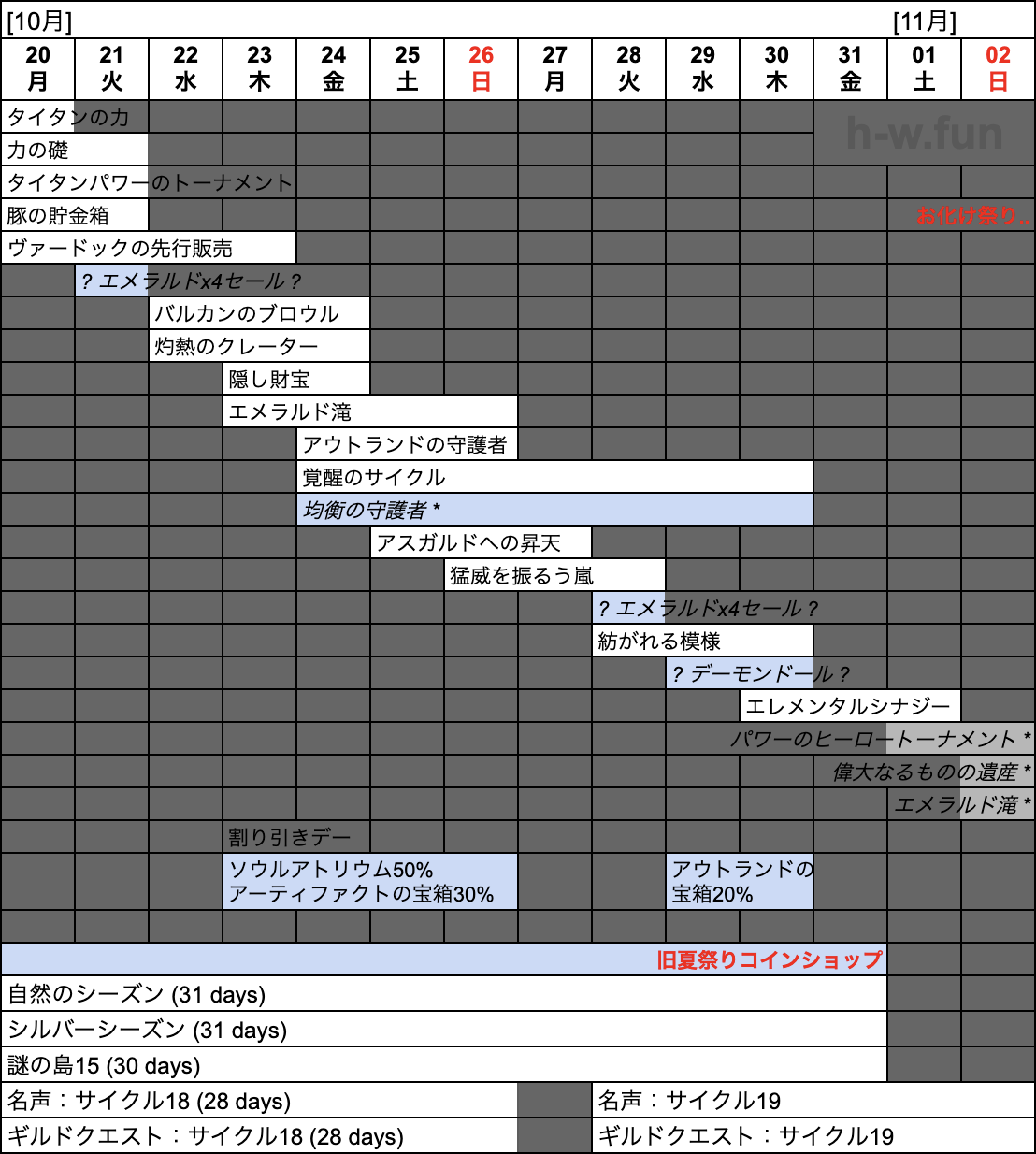 ガーディアンの皆さん、こんにちは!10月のイベントスケジュールはこちらですので、ぜひチェックしてみてください。しかし、最も近い最大のイベントのいくつかはそこに収まりきらなかったので、それらについても話しましょう。