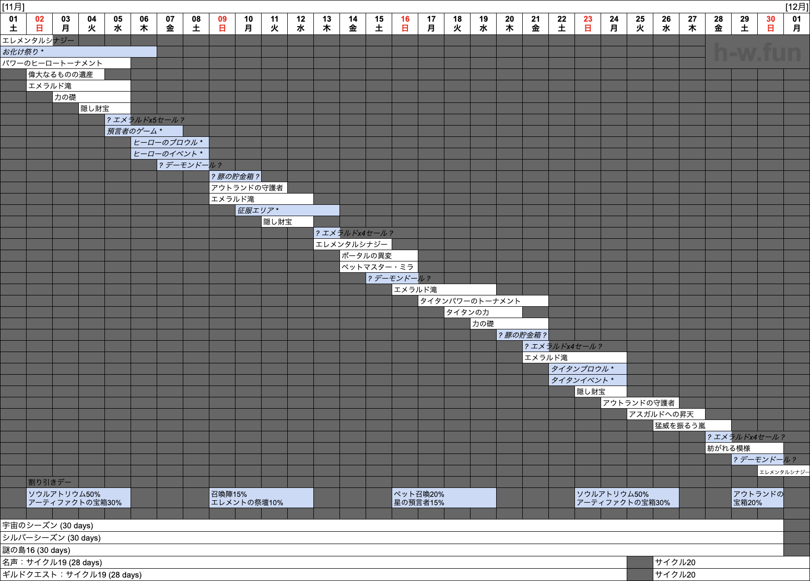 - 10/28(火) 〜 11/25(火): 名声:サイクル19