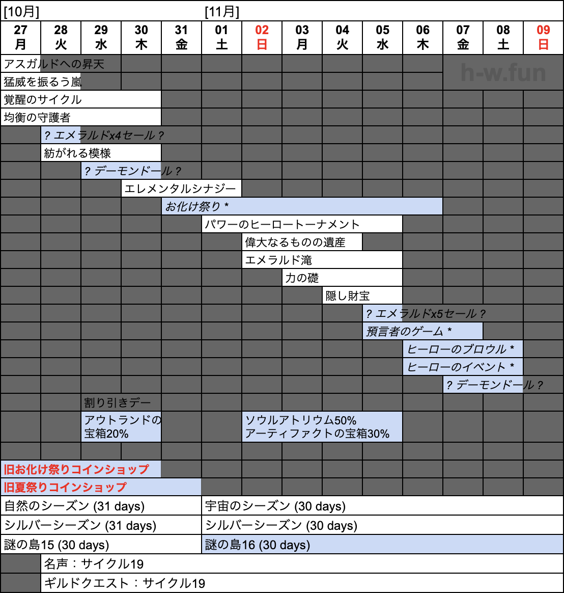 - 10/28(火) 〜 11/25(火): ギルドクエスト:サイクル19