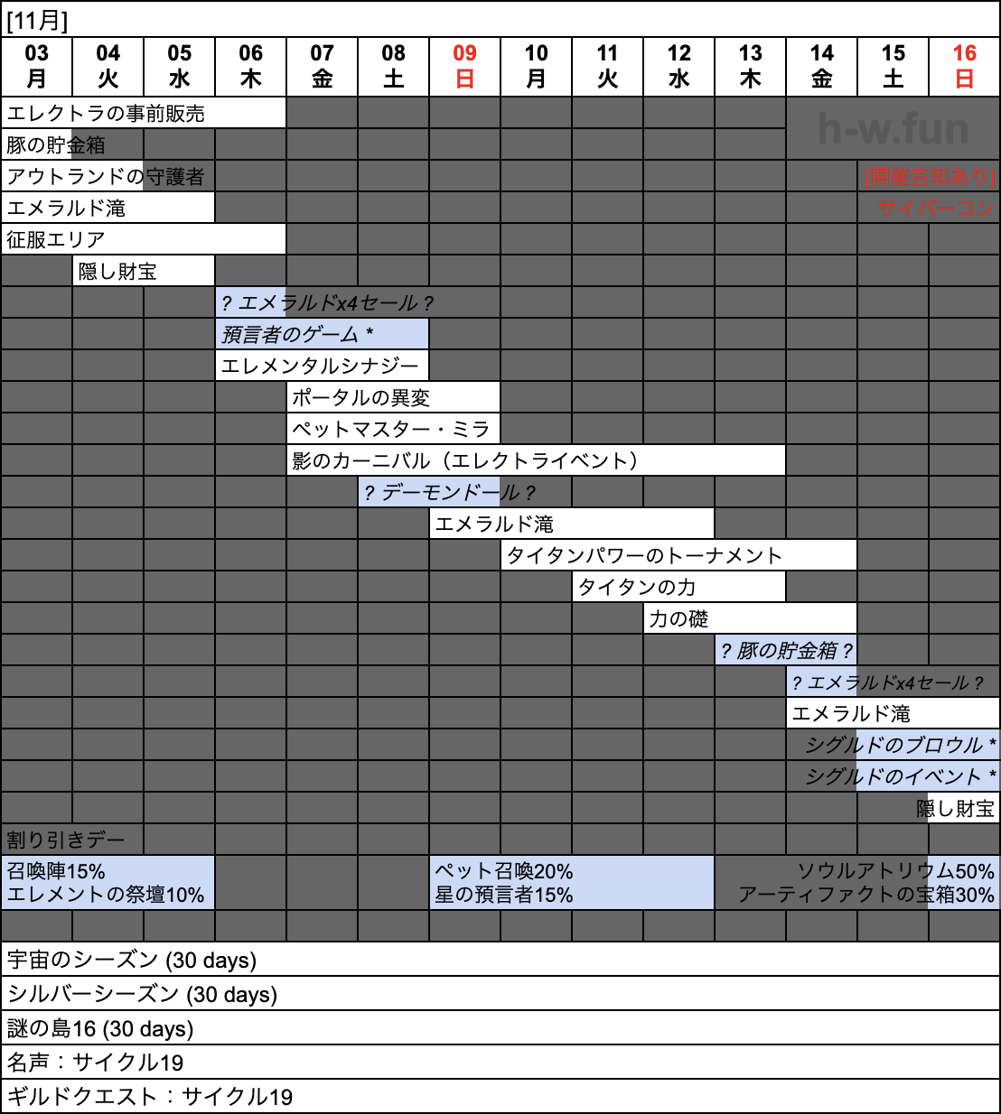- 11/13(木) 〜 11/16(日): エレメンタルシナジー ( > ラッキーロード)