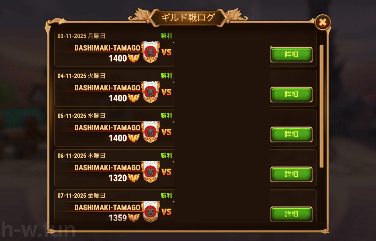 - ギルドDASHIMAKI-TAMAGOの戦績(2025.Week45)