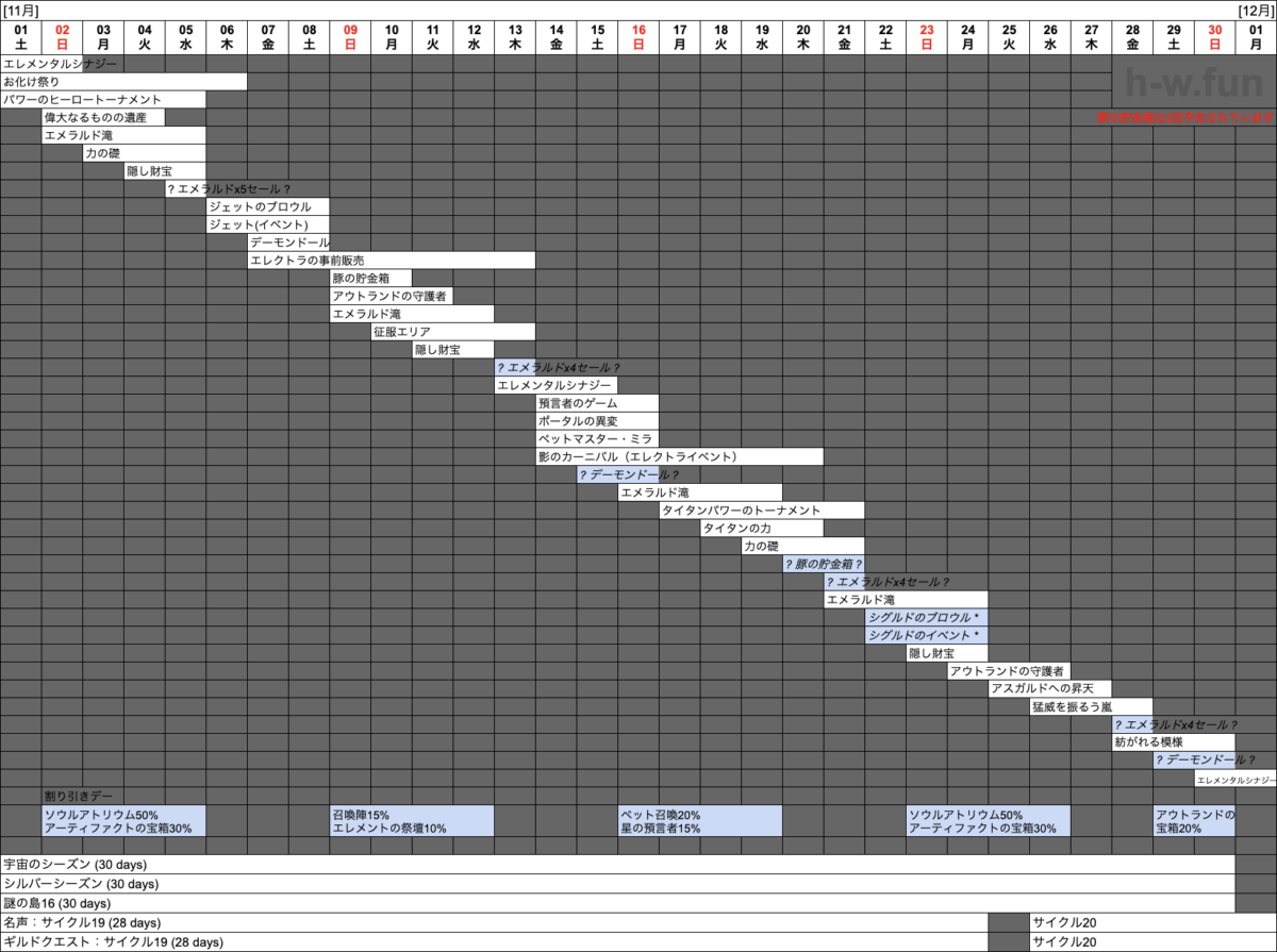 - 11/01(土) 〜 12/01(月): 宇宙のシーズン (30 days)