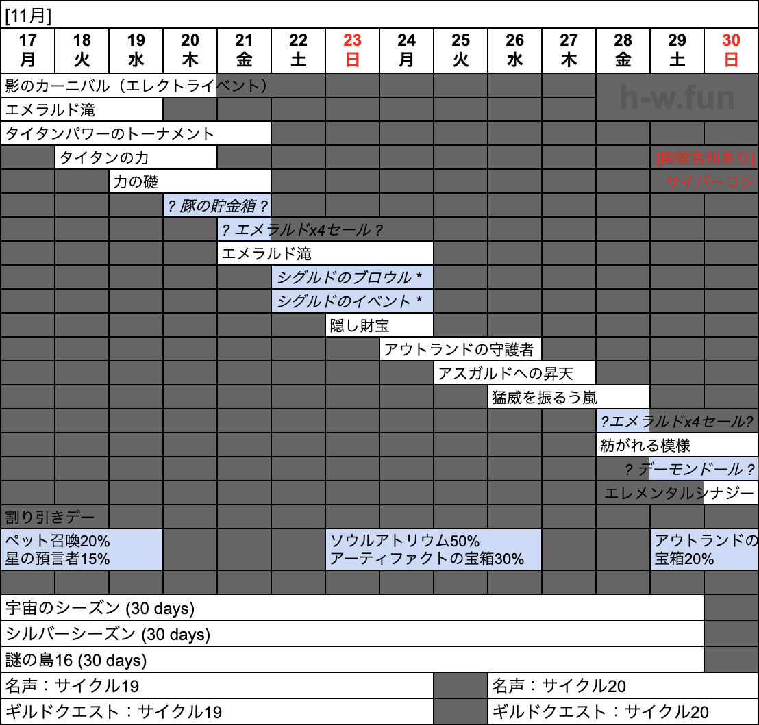 - 11/22(土) 〜 11/25(火): シグルドのイベント *