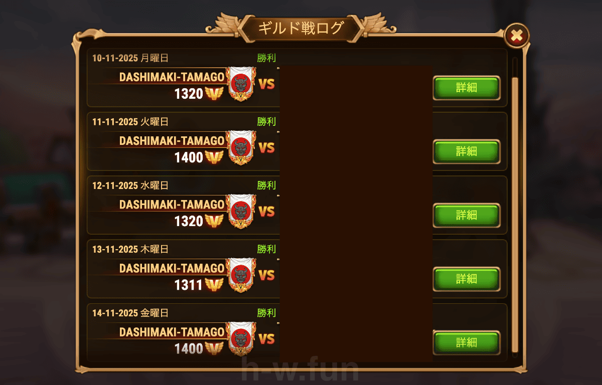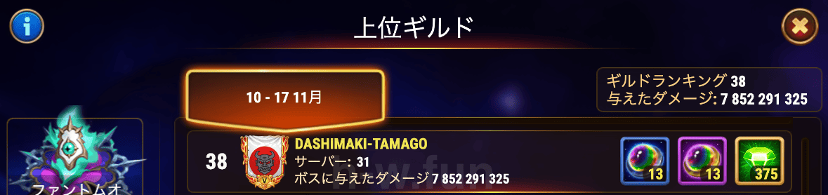 - ギルドDASHIMAKI-TAMAGOの戦績(2025.Week46)