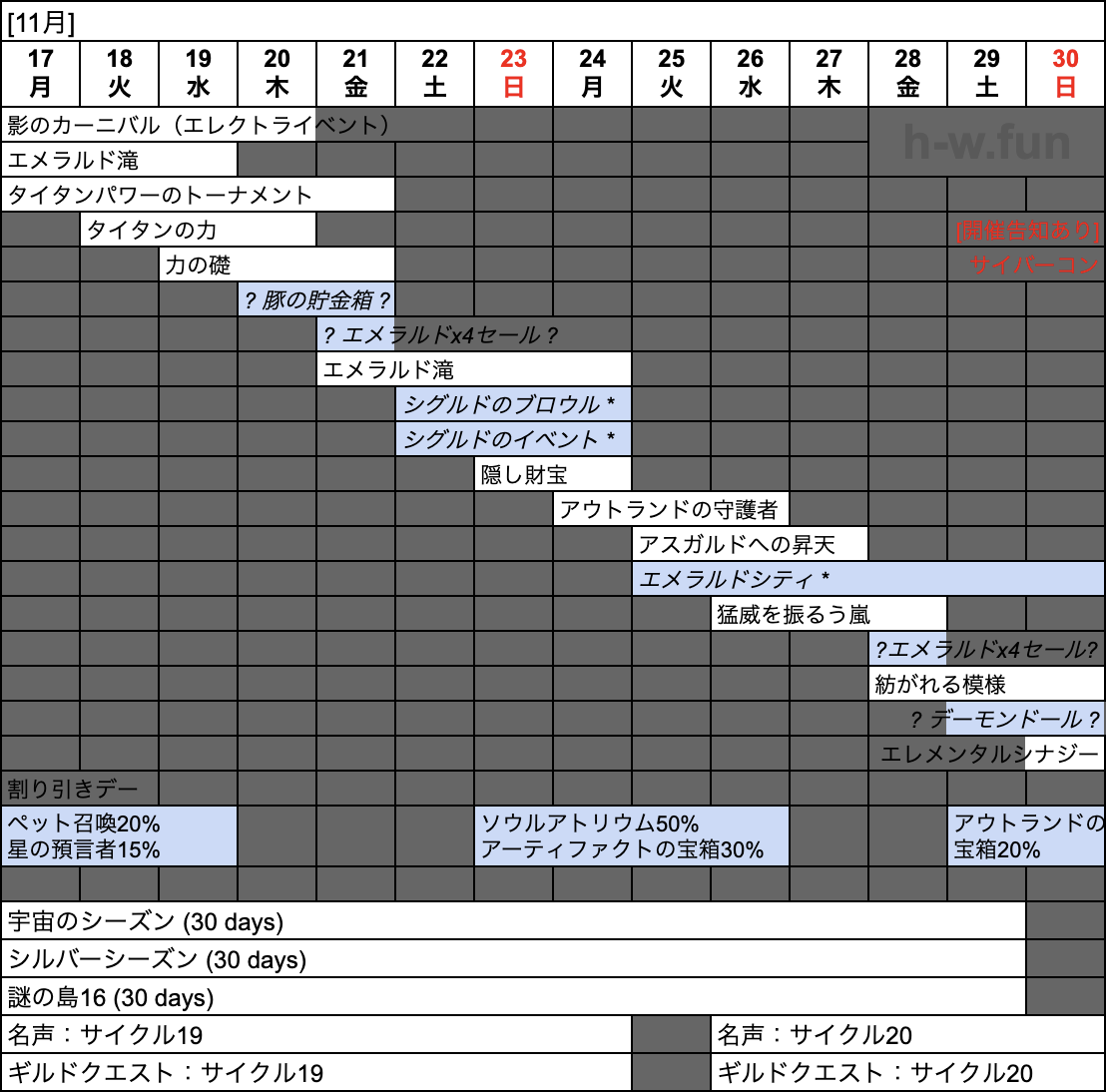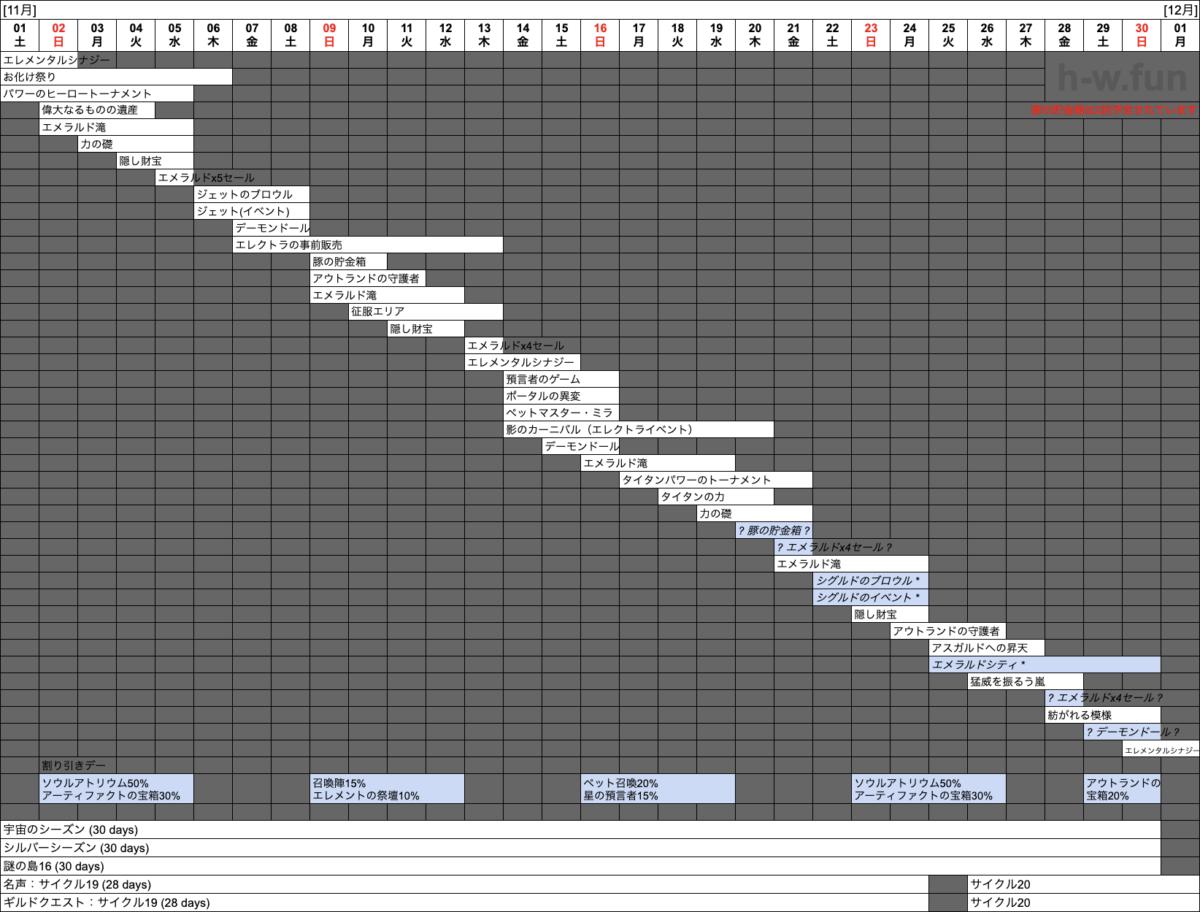 - 11/01(土) 〜 12/01(月): 宇宙のシーズン (30 days)