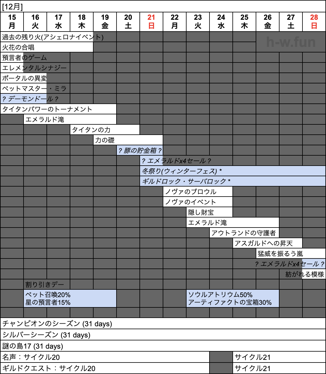 - 12/01(月) 〜 01/01(木): チャンピオンのシーズン (31 days)