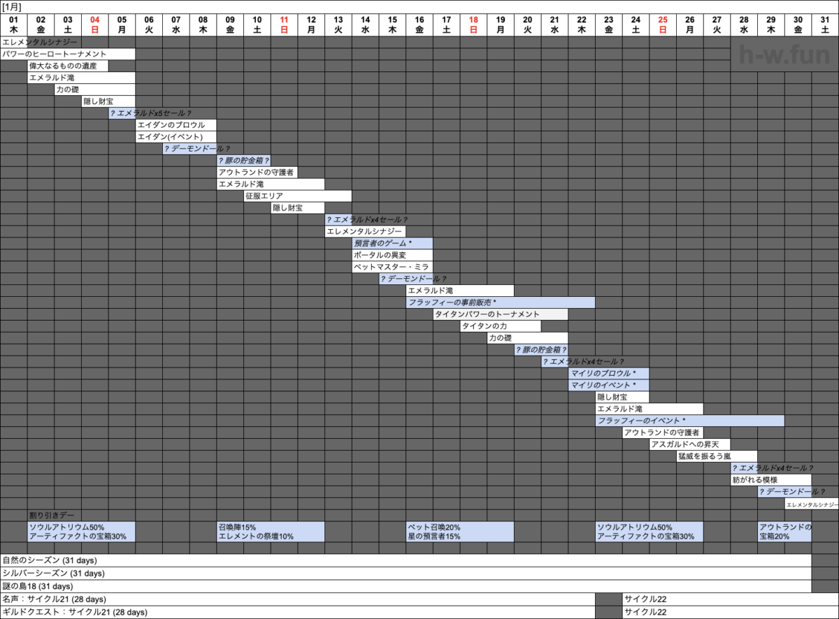- 01/01(木) 〜 02/01(日): 謎の島18 (30 days)