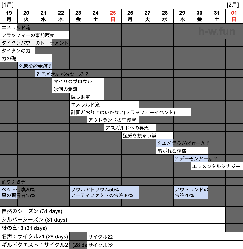 - 01/22(木) 〜 01/25(日): 氷河の潮流(マイリのイベント)