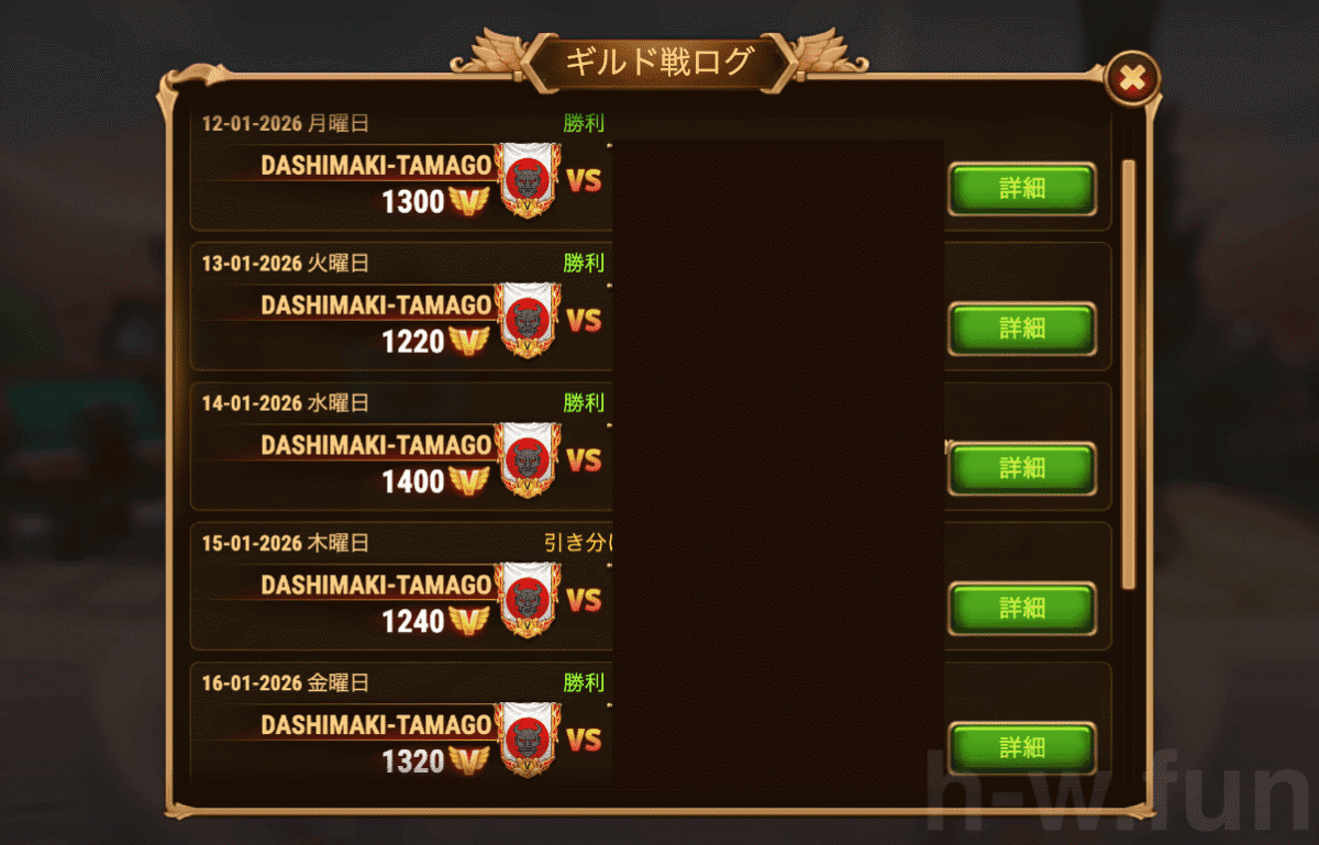 - ギルドDASHIMAKI-TAMAGOの戦績(2026.Week03)
