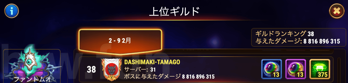 - ギルドDASHIMAKI-TAMAGOの戦績(2026.Week06)