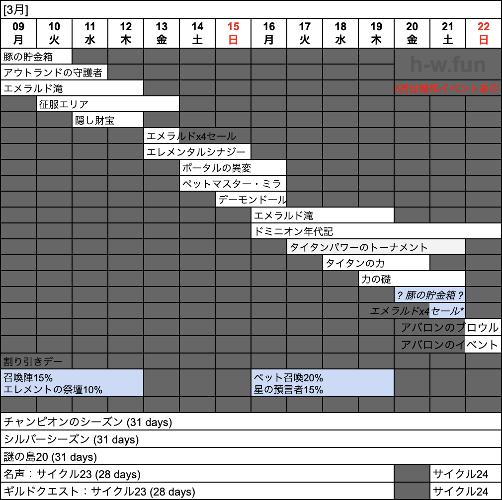 - 03/01(日) 〜 04/01(水): チャンピオンのシーズン (31 days)