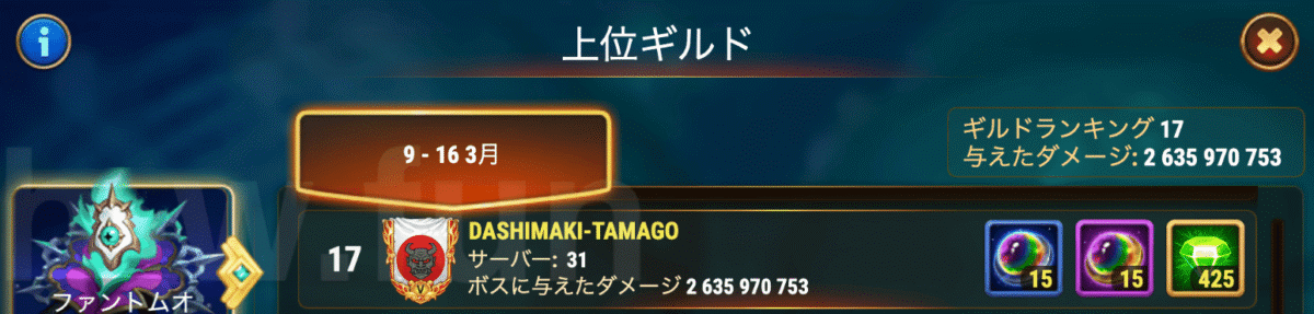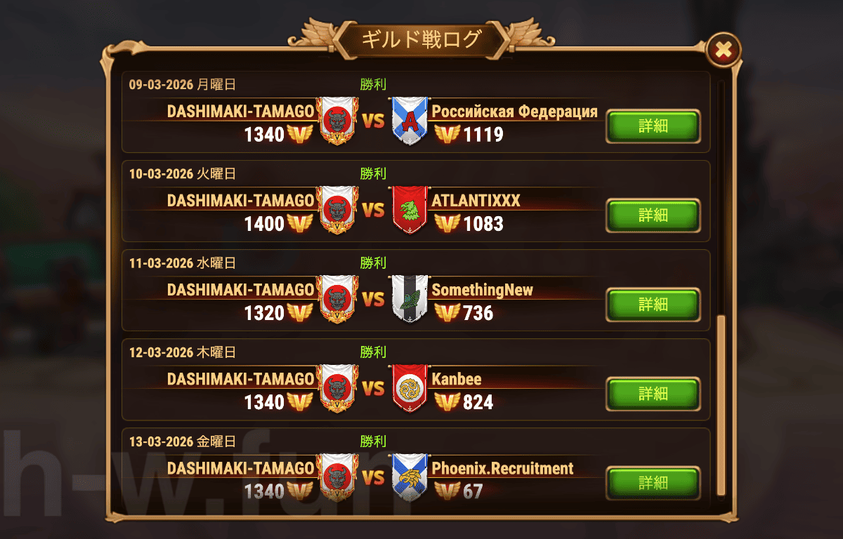 - ギルドDASHIMAKI-TAMAGOの戦績(2026.Week11)