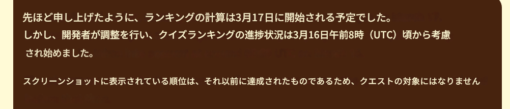 - なお、私は今回この問題の当事者ではなく、イベント期間中に移動を行ってクエスト報酬は受け取っています。