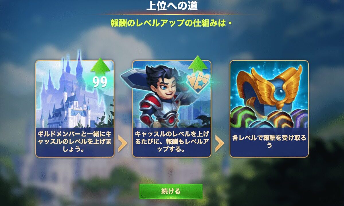 - 個人ではなく、ギルド全体で納品したスーベリア・コインとエメラルドでキャッスルレベルが進捗する