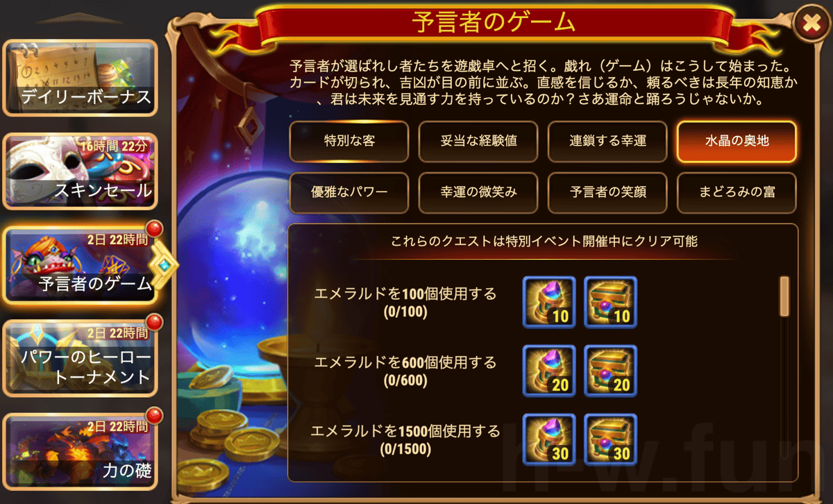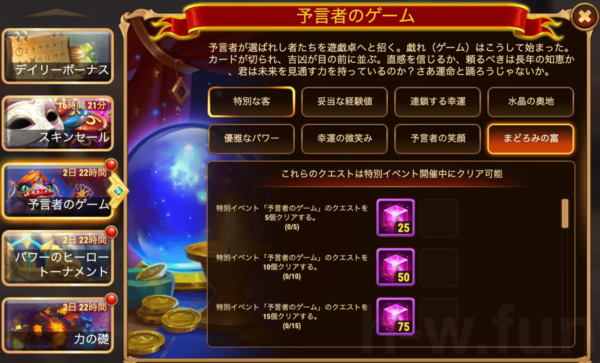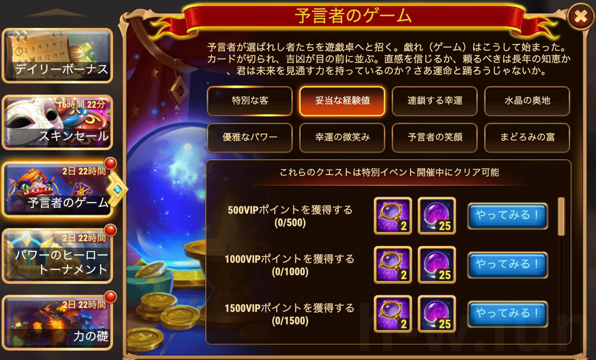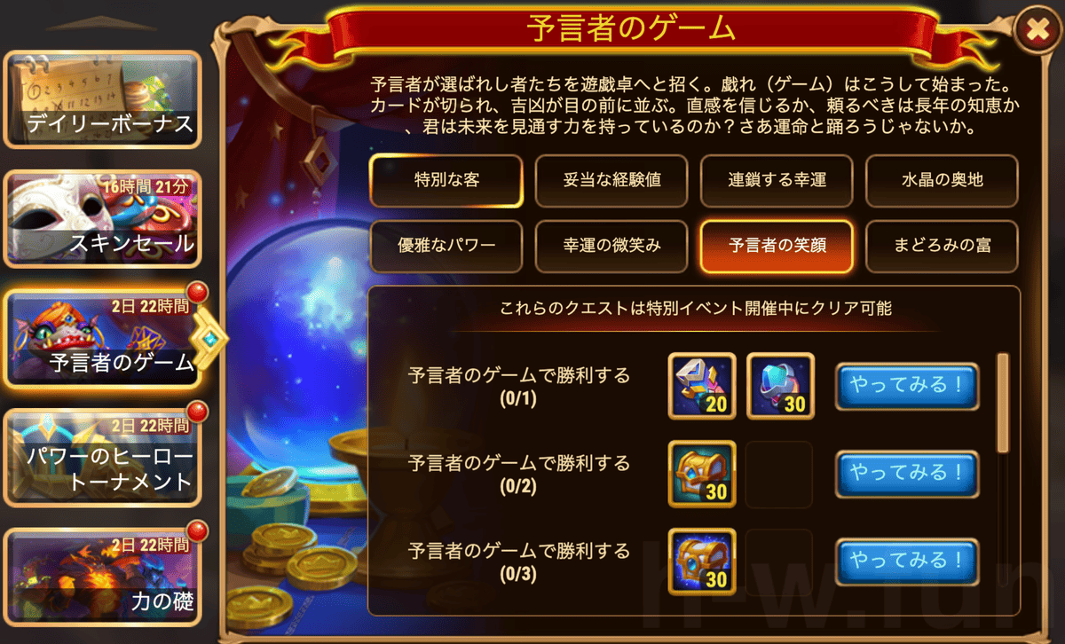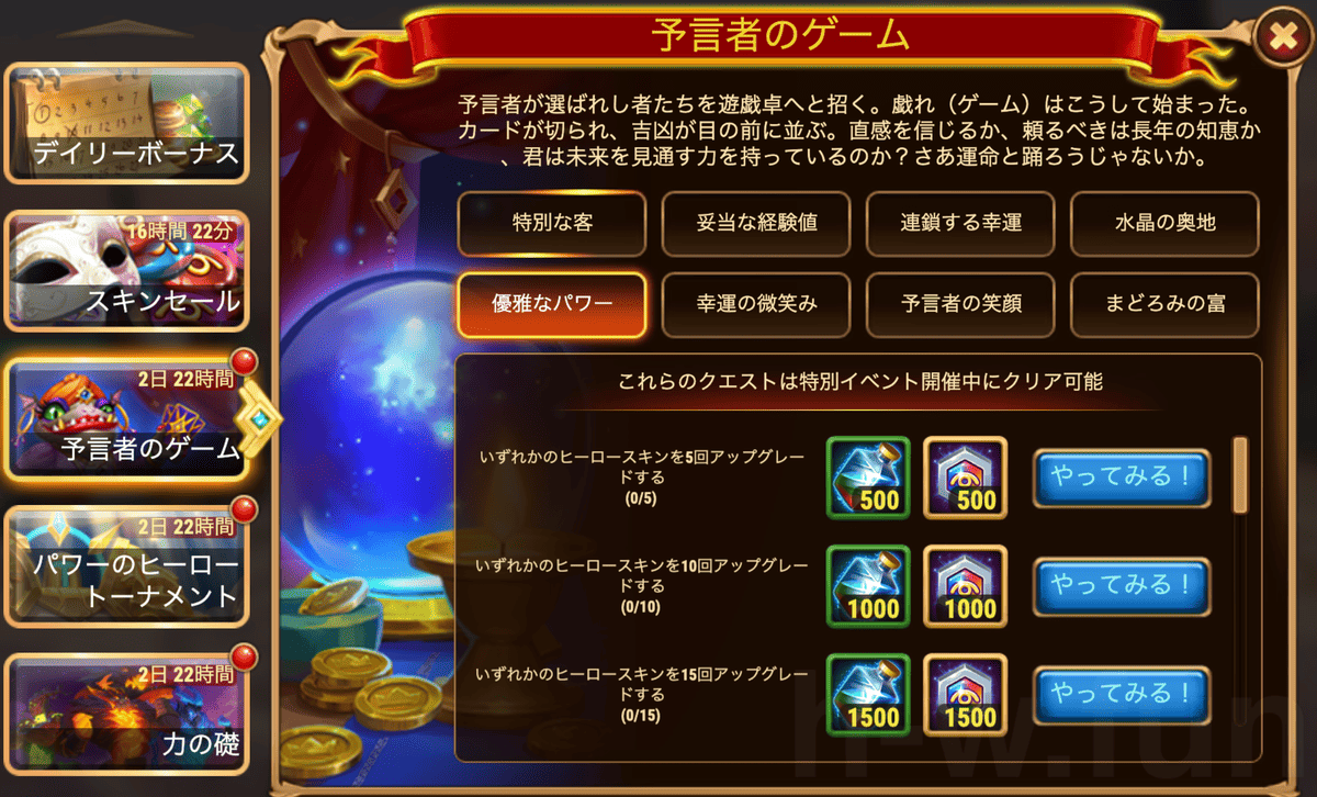 [HeroWars攻略]預言者のゲーム:タスク表&リワード
