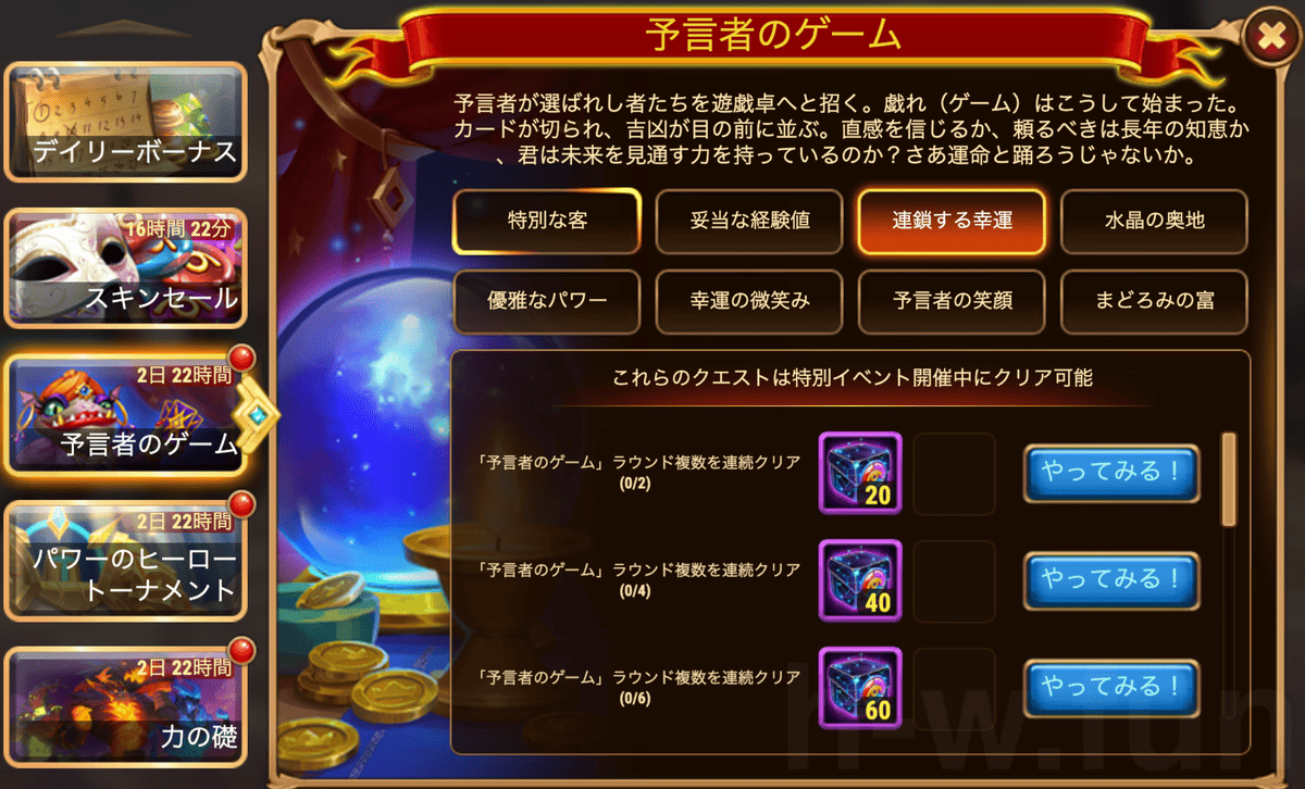 「予言者のゲーム」ラウンド複数を連続クリア