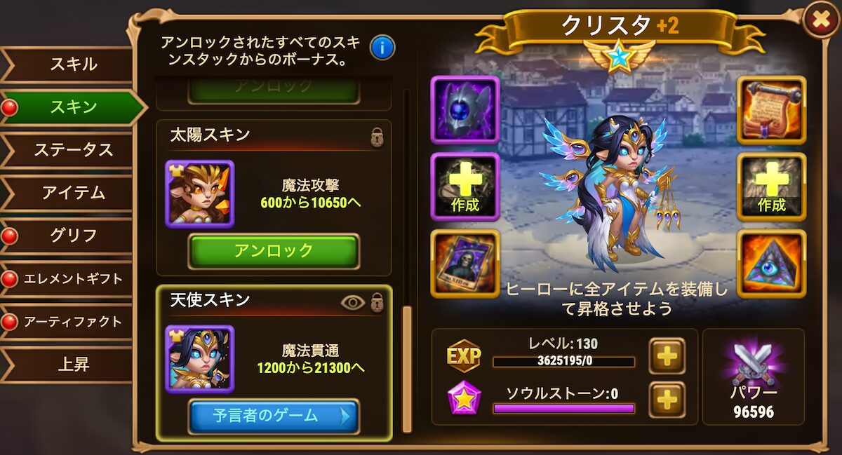 いずれかのヒーロースキンをアップグレードする | 130 | 予言者のコインx50 タイタンスキンストーンx53,000 タイタンポーションx31,000 | 22,593 |