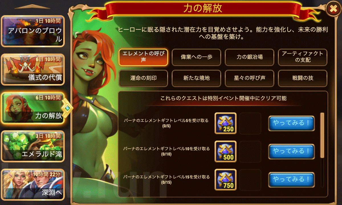 [HeroWars攻略]力の解放(バーナ)